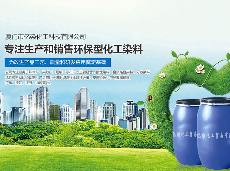 廈門市億染化工科技有限公司是一家集研發(fā)、生產(chǎn)、銷售一體的綜合型企業(yè)。公司主要經(jīng)營:酸性染料、金屬絡(luò)合染料、高牢度分散染料及印染助劑。公司信守“以誠信贏合作、以質(zhì)量贏市場、以創(chuàng)新贏發(fā)展、以服務(wù)贏生存”的企業(yè)精神服務(wù)于廣大客戶,多年以來建立了良好的市場口碑,市場遍布福建、廣東、浙江、江蘇、山東及東南亞國家,與多家知名企業(yè)建立了長期合作伙伴關(guān)系!
